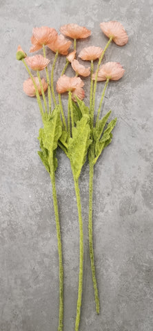 3、SIZE - An artificial poppy has a total length of 23.2 inches(about 59cm) and has 4 branches. It contains 3 flower heads and 1 bud,The flower head is about 2 inchs(about 5cm).