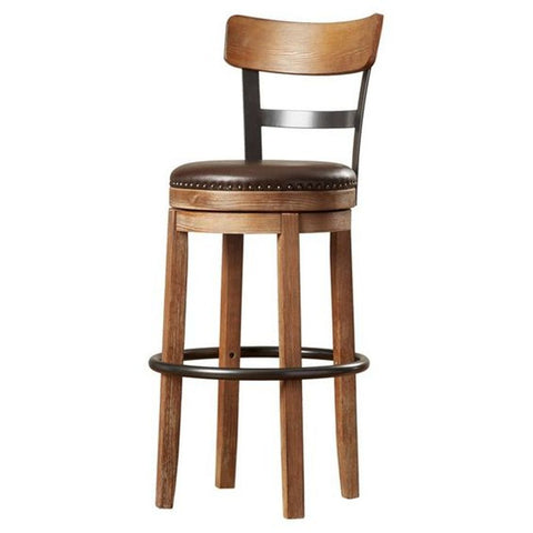 Counter-height bar stool with 360-degree swivel brings rustic, modern style to any kitchen, bar area, or game room.