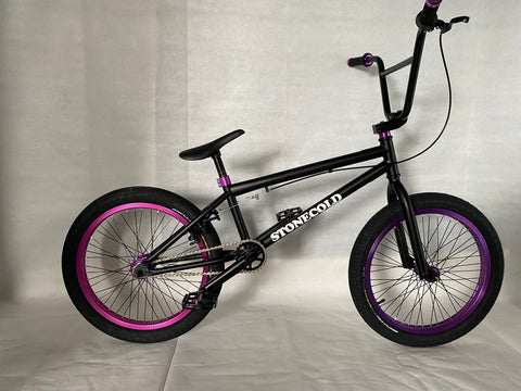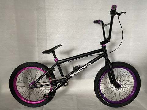BMX Bike Style: This 20" bike features awesome BMX styling, bright black and purple paint, and front foot pegs; front hand brake and rear coaster brake provide precise control.