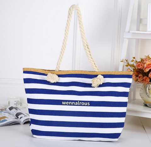 MULTIPURPOSE FASHIONABLE DESIGN : Featured with blue and white stripes, it is a classic and will not go out of fashion. It has strong, attractive rope handles which makes it easy to carry even for long hours.